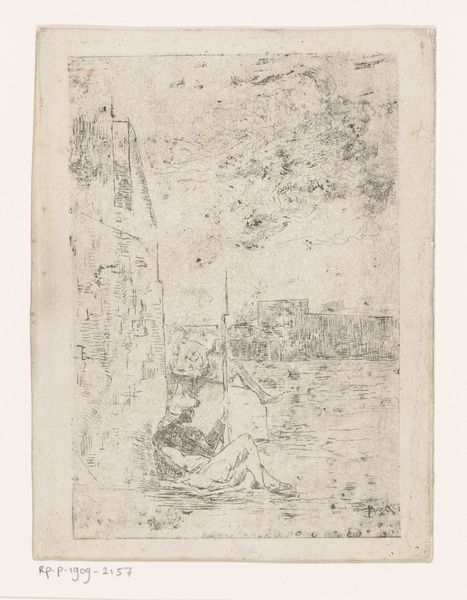 Rodolphe Bresdin made "Paysans se Reposant," or "Peasants Resting," using etching, a printmaking technique that requires considerable skill. The image is created by incising lines into a metal plate, inking the plate, and then transferring the image onto paper. Bresdin’s masterful handling of the etching needle results in a dense, intricate composition, filled with fine lines and subtle gradations of tone. Look closely, and you'll see how the density of lines creates areas of shadow and depth, particularly in the lush vegetation and the reflections in the water. This etching technique, although traditional, allowed Bresdin to capture the textures and details of the natural world, and the peasants in it. Bresdin's choice of subject matter, peasants at rest, elevates everyday rural life with a medium historically used for more grandiose themes. By focusing on labor, and its necessary pauses, Bresdin blurs the lines between high art and the realities of working-class existence. The print invites us to consider the dignity of labor, and the value of those quiet, in-between moments.
