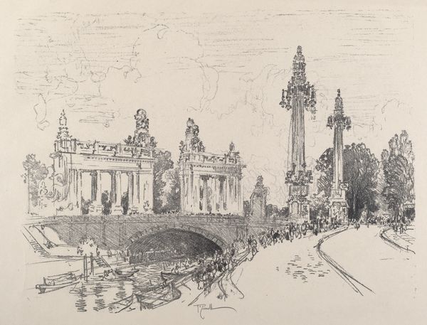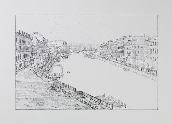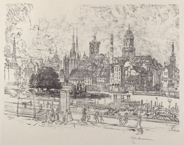 Joseph Pennell created this graphite drawing of the Landwehr Canal in Berlin during a period of rapid industrial expansion in the late 19th and early 20th centuries. Pennell, an American expatriate, was part of a wave of artists drawn to Europe's burgeoning urban centers. Notice how Pennell captures the contrast between nature and industry, with smokestacks looming over trees, a visual metaphor for the era's societal shifts and anxieties. The canal itself, once a vital transportation artery, reflects the changing dynamics of labor and trade in a city grappling with modernization. Pennell’s choice to focus on infrastructure subtly hints at the human labor that underpins this progress, yet remains largely unseen. While seemingly a straightforward cityscape, consider how Pennell, as an outsider, interprets and presents Berlin’s transformation and the social complexities it embodies. It prompts us to reflect on how industrial progress shapes identity, and how the artist perceives their own place within it.