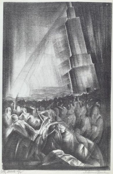 James N. Rosenberg made this drawing, The Shambles, in November 1929, probably with charcoal or graphite. Look at those swirling lines and smudged shadows, they suggest a world in turmoil, rendered with an urgency that speaks to artmaking as a kind of frantic transcription. The material aspects here are stark; it’s all about the grainy texture of the paper fighting with the slippery darkness of the medium. See how the artist uses hatching to build up form, especially in the looming buildings, but then dissolves into loose scribbles as we move toward the foreground crowd. The way the figures morph into skulls reminds me that art doesn't have to be precise to be potent. It's more about the feeling, the raw emotion. That scrawled "NY Stock Yards" sign amidst the chaos is a particularly evocative detail. Rosenberg's work reminds me of artists like George Grosz, who used similar expressive techniques to critique society. Art is always a conversation, isn't it? A back-and-forth across time, where meanings shift and settle like sediment.