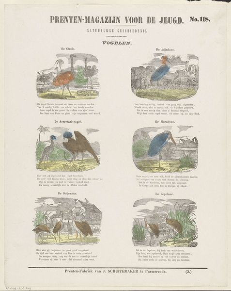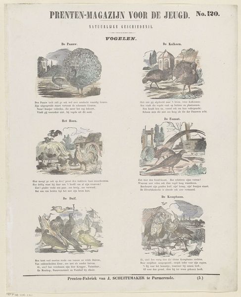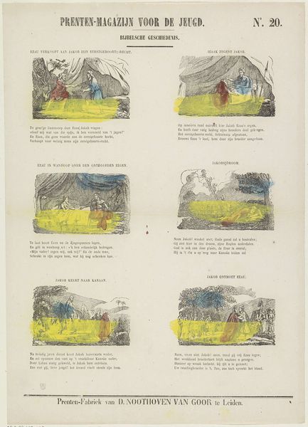 Curator: Let’s take a look at this Dutch print entitled *Spreekwoorden*, or “Proverbs,” created by Dirk Noothoven van Goor between 1850 and 1881. It's a really intriguing example of narrative art from that era. Editor: Yes, and I immediately notice how accessible it appears. The material, probably an inexpensive print, would have been readily available. The layout feels like a children's book, inviting engagement rather than intimidating with grand artistic statements. Curator: Precisely. The print brings together several small scenes, each illustrating a different proverb. These visual metaphors are meant to impart wisdom, acting as cultural touchstones for the viewer. It’s fascinating to consider how deeply ingrained these sayings were in Dutch society at the time. Editor: Agreed. The means of production tells a story. It’s not just the proverbs themselves, but the act of printing them en masse that reveals something about the societal values and how information circulated. Think about the workshop creating these: the labour involved, the role of printed images as conveyors of meaning… Curator: You’re highlighting an interesting angle: the print serving as a means of reinforcing and perpetuating cultural knowledge. The specific proverbs that were chosen— what does that tell us about the anxieties and aspirations of the time? I read the illustration of a hunter surrounded by sheep as a warning about leading by blind faith; following trends could lead to one’s undoing. Editor: The simplification is key. To ensure the images are easily 'readable,' the artist streamlines them to deliver clear instructions: to accept societal wisdom without further questions. That simplification must involve efficiency and a certain exploitation of resources at some level to get the 'message' out effectively. Curator: Exactly, but these simple depictions can also operate in multilayered, profound ways. They reflect not just morals, but also desires. So it’s worth pondering upon why particular maxims resonate in a community or period—which speaks to broader anxieties or yearnings. Editor: From a production and consumer angle, examining material output can reveal a rich story. As for its resonance and transmission of meaning in a specific culture and time, that is the other half of it. Together, they give us a great and rich snapshot to think through!
