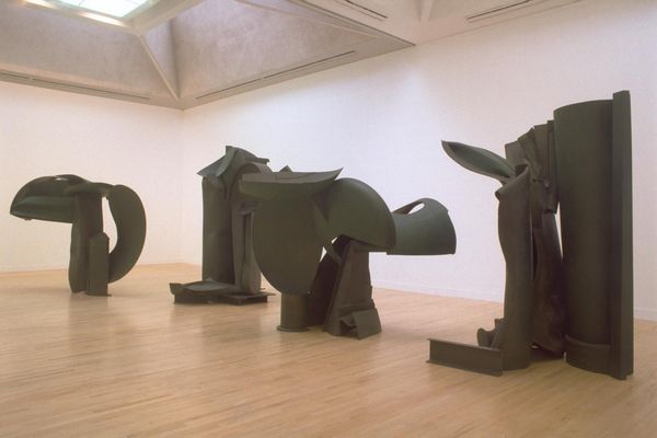Mother and Child Divided is a floor-based sculpture comprising four glass-walled tanks, containing the two halves of a cow and calf, each bisected and preserved in formaldehyde solution. The tanks are installed in pairs, the two halves of the calf in front of the two halves of the mother, with sufficient space between each pair that a visitor may walk between them and view the animals’ insides. Thick white frames surround and support the tanks, setting in brilliant relief the transparent turquoise of the formaldehyde solution in which the carcasses are immersed. The sculpture was created for exhibition at the 1993 Venice Biennale and was subsequently the focal point of the 1995 Turner Prize at Tate Britain (then The Tate Gallery), the year that Hirst won the prize. It is now in the collection of the Astrup Fernley Museum of Modern Art, Oslo. Hirst created Tate’s copy for exhibition in the Turner Prize Restrospective at Tate Britain in 2007.