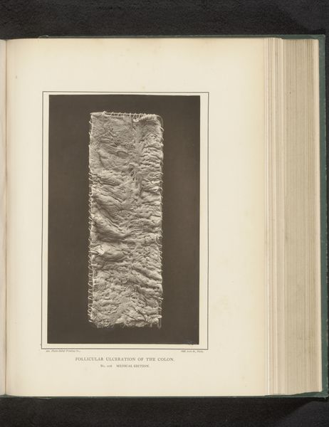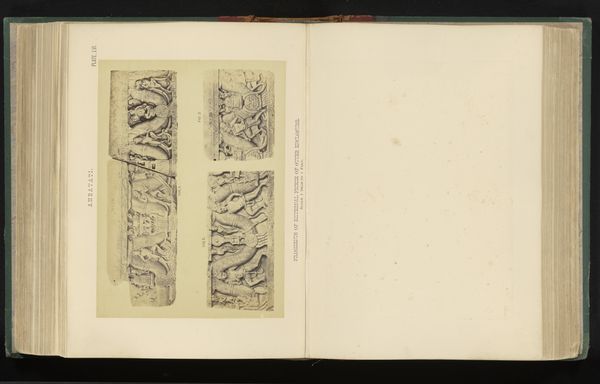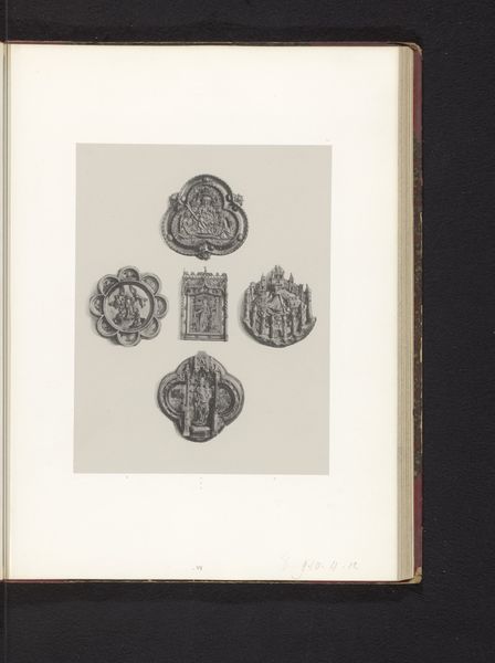 Editor: So, this is "Fotoreproductie van een prent, voorstellende een houten drukvorm" – a photo reproduction of a print depicting a wooden printing form – created before 1872 by B. Erdmann. It looks like a drawing and print using graphite, engraving and woodcut on paper, presenting this weathered block. What do you see in this artifact, with its strange history of reproduction? Curator: I see echoes of cultural memory, specifically concerning the book. A printing block itself carries the weight of dissemination, the promise of multiplied knowledge. The roman numerals chiseled into the wood transform the object: “J. MCDXLI.” – 1441. It speaks of origins, as well as artistic reproduction and book history. Editor: Is that an imperfection, a hole, in the block near those engraved characters? Curator: Yes, observe the circular imperfection disrupting the block's surface. It introduces the idea of wabi-sabi - the acceptance of transience and imperfection – also a certain kind of natural beauty in something flawed. Perhaps there are cultural associations in the way a thing can appear to be ‘real,’ while actually being re-presented. Do you see other symbolism? Editor: Well, the shape is almost totemic. That stacked shape on top reads like an expectation that something else would build upon it, which feels powerful, almost masculine. Curator: Interesting, because the text reminds us about the relationship of books and printing technology, making tangible a history of production that’s been largely erased from modern reading habits. These images are themselves historical reproductions that distance us further from their original use value. Editor: I never considered how much weight such a simple object could carry. I’m grateful for this detailed journey of analysis. Curator: Indeed! The weight of history imprinted, layer upon layer, waiting for us to read its signs.