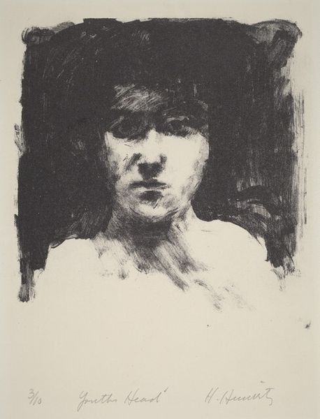 Eugene Carrière created this lithograph "Marguerite Carrière" at an unknown date. The somber, almost monochromatic print immediately envelops us in a world of shadowy introspection. The composition is dominated by soft, diffused light that delicately models the subject's face. Carrière’s strategic use of light and shadow is less about depicting form and more about evoking a mood. The hazy atmosphere and indistinct edges of the face create a sense of dreamy ethereality. This aesthetic aligns with late 19th-century Symbolist ideas, challenging traditional modes of representation and delving into subjective experience. It questions the viewer's perception and the semiotic relationship between the sign—the image—and what it signifies, destabilizing fixed meanings. Notice how the absence of sharp lines compels us to fill in the gaps, engaging our imagination. The piece prompts a re-evaluation of artistic representation, inviting us to consider how art can function as a site of ongoing interpretation.