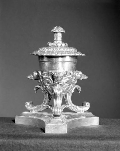 Editor: This is "Presentation Smallsword with Scabbard of Captain W. E. Cracraft," dating from 1797-1798, created by James Morisset. The use of silver and metal creates a striking, elegant effect. Its linear design suggests neoclassical refinement. What do you see in this piece, beyond its historical context? Curator: Initially, one observes the impeccable symmetry and balance inherent in the sword's design. The curves of the hilt mirror those of the scabbard’s upper section. What semiotic weight do you attribute to the engraved decorations throughout its form? Editor: They remind me of emblems – miniature artworks within the artwork. The tiny bird in the oval shape and the foliage feel very intentional, placed to evoke a sense of nobility and perhaps even a touch of whimsy, despite its primary function as a weapon. How would you categorize these choices compositionally? Curator: The visual lexicon directs us. The repetitive, circular motifs act as structural devices that compartmentalize and highlight different segments of the sword. Observe how the hilt, in particular, becomes a self-contained narrative due to this arrangement. The monochromatic rendering emphasizes the sculptural aspects, urging a reading that privileges form over color. It's all about how the line directs the eye and dictates meaning, isn't it? Editor: It truly is! I hadn't considered how much the engraving influences the structure. Thanks for this close formal reading of the sword! Curator: A pleasure. The rigorous application of structural analysis unveils depths not always immediately apparent.
