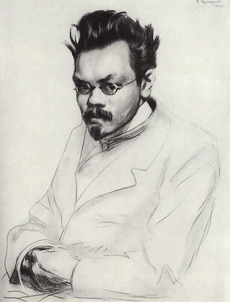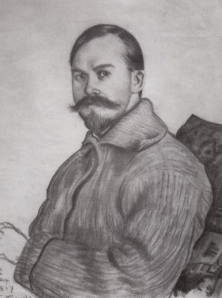 Here, Boris Kustodiev portrays himself with a book, rendered in what appears to be charcoal on paper. The book, held open, is the dominant symbol, radiating knowledge, introspection, and perhaps even self-analysis. The act of reading is, in itself, a profound motif. Across centuries, from ancient Egyptian scrolls to medieval illuminated manuscripts, the book signifies wisdom and the quest for enlightenment. It's a portal, inviting us into the artist's inner world. Compare this with, say, Jan van Eyck’s "Arnolfini Portrait," where the open book hints at literacy and wealth; or even further back, to depictions of the Evangelists with their gospels. The meaning of the book has gone through a metamorphosis over time, from divine revelation to secular learning, yet the book always stands as a testament to human intellect and the enduring power of the written word. This self-portrait delves into the artist's psyche, engaging us on a subconscious level. The image reveals how our memories and the narratives we absorb contribute to our self-perception. The simple lines evoke an emotional response, echoing the timeless quest for knowledge.