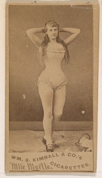 This photograph of Miss Violette comes from a series produced by the Wm. S. Kimball & Company, a cigarette manufacturer. These cards were printed using the photolithography process, a technique that allowed images to be reproduced quickly and cheaply on a mass scale. The sepia tone gives the image a nostalgic feel, but it also speaks to its original context, one of industrial production and consumer culture. This was a world where images of actresses, like this one, were commodities, used to sell tobacco products. It's worth noting that the subject of the photograph, Miss Violette, is presented as a performer, a woman whose image is being circulated for the pleasure of others. The card itself, a small, mass-produced object, speaks volumes about the social and economic forces at play in the late 19th century. By looking closely at the materials and making of this object, we can begin to understand the complex relationship between art, labor, and commerce.