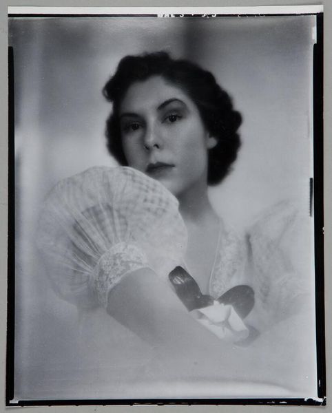 Curator: Looking at "Edna R. Weissman," a Polaroid photograph from 1977 by Andy Warhol, I immediately notice the immediacy and intimacy Warhol captures. Editor: Right? There’s this startled, almost vulnerable quality. She looks like you caught her mid-thought, or maybe just whispered a delicious secret in her ear! Curator: It’s a quintessential Warhol portrait from that era. You see how he democratized portraiture, treating socialites and celebrities the same, capturing their images with that distinctive Pop Art sensibility? Weissman, I believe, was a significant figure in the New York social scene at the time. Editor: And it's fascinating, because it strips away some of the pretension of high society. There's an awkwardness here that's deeply appealing. The angle, the raw flash…it’s like seeing through the facade, maybe even into a private moment. It reminds me of Diane Arbus, in a weird way, but glossier. Curator: I think what Warhol did so masterfully was leverage the machinery of celebrity itself. It’s less about pure artistic interpretation, and more about reflecting the media spectacle, right? That flat lighting, the high contrast—it almost foreshadows the digital age. Editor: It's true, Warhol anticipated so much. But I think it's precisely that combination, the artifice and the "real," that creates such a charge. She's so self-possessed and so vulnerable all at once. I can imagine her having incredible stories to tell, or a withering gaze to shut you down! Curator: I think looking at Warhol's work now, especially the portraits, is vital to understand the development of celebrity culture and image consumption. This photograph represents more than just a likeness; it’s a time capsule, and a piece of cultural commentary. Editor: Absolutely, it sparks the imagination. To think, the stories those eyes hold and what's going to happen tomorrow is an absolute enigma. The Warhol enigma never seems to get old.