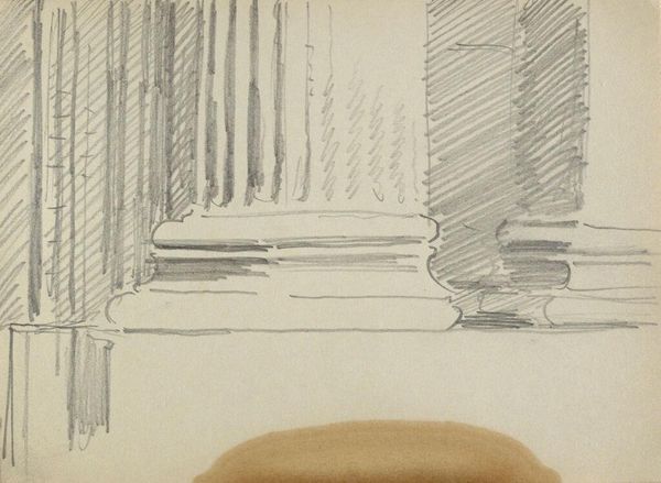 Editor: Here we have John Singer Sargent's sketch, "Blank page; verso: Sketch of Column Base with Fluted Shaft," its date is unknown. It is a pencil drawing of architectural forms, and I'm struck by its casual, almost fragmented nature. What do you make of this piece? Curator: This sketch offers insight into Sargent's artistic process and the cultural reverence for classical architecture during his time. Architectural studies were common practice, reinforcing social values associated with order and permanence. Do you think the unfinished quality changes its meaning? Editor: I suppose it highlights the process of observation and the artist's engagement with historical forms, rather than a finished statement. It feels more like a personal exploration. Curator: Exactly. It shows how even seemingly informal works contribute to the larger narrative of art history and its role in shaping cultural identity. Editor: I hadn't considered its social implications. Thank you. Curator: My pleasure. Thinking about the broader context always enriches the experience.