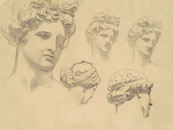 Editor: Here we have “Six studies of female heads,” dating sometime between 1622 and 1703, displayed at the SMK. They’re ink and charcoal drawings and have an unfinished, exploratory quality. What do you see in this work beyond studies of anonymous models? Curator: I see a glimpse into the artist's process, certainly. But more compelling is to consider how these seemingly simple studies embody the power dynamics inherent in image-making of the time. Consider, who was given the opportunity to be represented, and under what conditions? Editor: That's interesting. Can you elaborate? Curator: These are likely academic studies, meant for refining the artist's skills. But look at the features, the hairstyles. They conform to a very specific European ideal of beauty. We must ask, what narratives were these images ultimately meant to serve? How did these depictions reinforce or challenge prevailing societal norms regarding women's roles and representation? And whose voices are missing here? Editor: So, it’s not enough to see these as mere sketches; they’re also historical documents reflecting specific cultural biases. Curator: Precisely! And it is our job to read them critically, accounting for context and absence. Who gets to draw, who gets drawn, and how these images circulated within the artistic and social spheres are all crucial questions to address. Editor: I hadn't thought of it that way. This makes me want to re-evaluate other classical artworks too. Curator: It's about peeling back the layers and acknowledging the complex histories embedded within them, engaging in continuous dialogue about representation and power.