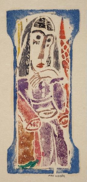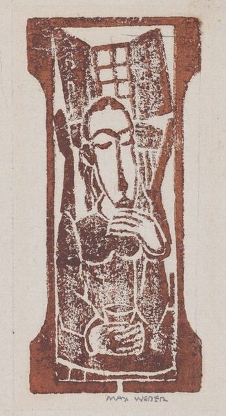 Max Weber made this small woodcut, "Head of a Man," and what strikes me right away is how the process is so present, almost celebrated. The blocks of color, brown, blue, lilac, are laid down with such simplicity, it feels honest. You can almost feel the gouge of the knife in the wood, especially in the black lines defining the man's face and hair. The color isn't trying to trick you into thinking it’s real; it’s just THERE, an object, a hue, a thing in itself. Look at the little grid of blue at the top, like a window, and how the brown at the base grounds the image, literally and figuratively. It makes me think of other artists who embraced the directness of materials, like the German Expressionists. Weber’s not trying to hide anything; he shows you how it’s done, inviting you into the conversation about seeing and making. And ultimately, isn't that what art's all about?