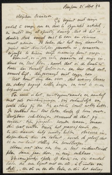 This letter was penned by Jac van Looij in 1886. Notice the fluid, almost urgent hand, which reveals much about the writer's state of mind. Consider the act of writing itself—a direct line to express thoughts and emotions. Throughout history, writing has been seen as a powerful medium for conveying hidden truths and unspoken desires. We see this in ancient Egyptian hieroglyphs, where symbols served not just as communication, but as keys to the afterlife. The very act of committing words to paper—a personal declaration meant for another’s eyes—mirrors the confessions and revelations found in psychoanalytic settings. It is as if, in writing, the subconscious finds a voice, revealing layers of thought and feeling. The emotional energy imbued in this letter resonates across time, a testament to how human expression carries deep, subconscious power. Just as ancient symbols evolve and reappear, the emotional weight of personal correspondence continues to engage us, connecting us to past experiences.