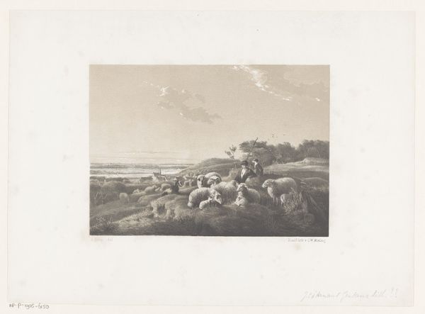 Paul Huet created this evocative landscape view of Rouen, using etching techniques to render depth and atmosphere. The composition draws the eye from a detailed foreground of textured vegetation and figures, leading into the soft gradations of light across the water and fields, punctuated by the spires of Rouen in the distance. The use of chiaroscuro enhances the scene's emotional intensity. Huet manipulates the contrasts to suggest not just visual space, but also a contemplative space. His choices reflect the influence of Romanticism, where the sublime is found in the natural world. But here the sublime is structured, mediated by the artist's intervention and technical skill. Note how the linear precision of the etching medium defines the shapes and volumes, yet dissolves into atmospheric effects, questioning the boundaries between objective representation and subjective experience. The very act of representation is foregrounded, reminding us that what we perceive is not raw nature, but a constructed image mediated through aesthetic and technical processes.