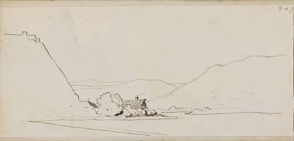 Curator: At first glance, this piece feels so still and almost melancholic. Editor: Indeed. This is Francis Towne's "Lake of Uri." Its miniature scale draws the viewer in, don't you think? Curator: Absolutely. The lake and surrounding hills, reduced to near monochrome, evoke a sense of ancient serenity. Perhaps it’s meant to suggest the timelessness of the Swiss landscape. Editor: The barest minimum of lines delineates the forms. The sparse use of color and the focus on essential shapes create a harmonious, almost meditative, effect. Curator: The towers in the village also subtly point to themes of human presence within a vast, natural world, a recurring theme in landscape art. It quietly reminds us of our place. Editor: It’s true. The composition is quite economical, but the feeling is expansive. It reminds us how powerful suggestion can be.