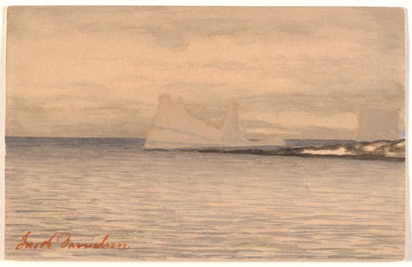 Louis Apol captured this view of an iceberg in the Northern Arctic Sea using watercolor. The choice of watercolor, typically associated with quick sketches and preliminary studies, belies the work's deeper engagement with its subject. The fluid nature of watercolor allows Apol to evoke the shifting, ephemeral qualities of ice and water. Notice how the washes of blue and grey mimic the light filtering through the frigid atmosphere. The iceberg itself is rendered with a remarkable attention to texture, the layered washes suggesting the melting, crumbling surface of the ice. Apol's careful application of paint embodies the experience of the Arctic landscape, its harshness and grandeur. The work’s materiality transcends mere representation, inviting us to consider the social implications of encountering such environments. Exploration, resource extraction, and the representation of landscape all go hand in hand. By focusing on the materiality of the painting itself, we can appreciate how Apol’s artistic choices deepen the work’s meaning, bridging the gap between observation, experience, and the broader social context.