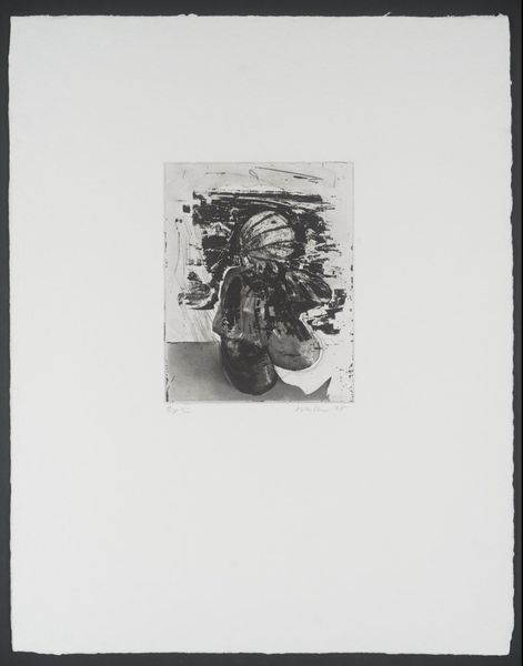 Curator: Mitchell Siporin's "King David" invites us to consider the complexities of leadership, legacy, and the burdens of power within a religious and historical context. Editor: Oh, wow, what a striking image! The jagged lines and the king's almost crumbling crown give off a real sense of unease and inner turmoil. Curator: Indeed. Siporin often explored themes of social justice and human struggle. Here, the figure of David, burdened by the weight of his crown, reminds us of the ethical dilemmas leaders face. Editor: The harp almost looks like it's weeping. Does that tie into the biblical stories of David's guilt and repentance? Curator: Precisely. Siporin masterfully uses symbolism and distorted forms to convey psychological depth and moral ambiguity. Editor: I'm left wondering about the relationship between personal flaws and the wielding of absolute power. Curator: Siporin compels us to engage with the ongoing discourse on leadership, accountability, and the human condition. Editor: I see it now, a potent reminder that even kings carry the weight of their decisions. Curator: This provides insight into the multifaceted layers of meaning embedded within Siporin’s visual narrative. Editor: It gives me lots to contemplate.