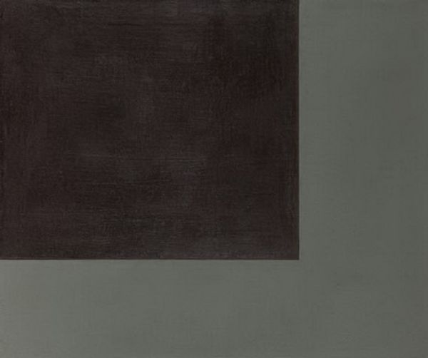 Curator: We’re standing in front of Tony Smith’s "Untitled," a painting created in 1962. It's composed of a simple black rectangle set against a much larger expanse of off-white. Editor: It's incredibly stark. That black form seems so resolute, so devoid of anything extraneous. There's a certain coldness, a sense of detachment. What's the resonance there, in your reading? Curator: Smith was deeply invested in geometry and the emotional weight of forms. The rectangle can be seen as a symbol, distilled down to its most fundamental state. We see such strong visual weights used in many earlier periods in symbolic depictions, think the heavy robes worn in the Renaissance compared to more loose depictions in Rococo and its sense of fleeting elegance. Its minimalism lends itself to the potential to act as a grounding visual anchor, an absence which can be filled with deeper symbolic meanings. Editor: It makes me think about material limits and what an artist can even *do* to create something, to call it “art”. I wonder what process or specific type of acrylic Smith was interested in. Was it an innovative material, or an especially manufactured process that he might have wanted to draw attention to by emphasizing such geometric regularity in the brushstrokes? Did the surface have to be specifically manufactured and what was that like in the early 60s? Curator: It would make sense he chose it for its precision; hard-edge painting was about absolute clarity. It’s like reducing representation to pure essence – even a specific type of brushstroke! Editor: But doesn't that essence get lost if the production means weren’t so specific to make the painting happen? The means are intrinsic to whatever symbolic representation this painting achieves! I’m curious whether it was the pursuit of industry standards of mass production or attempting something brand new? And how did *that* influence its minimalist meaning. Curator: Interesting points, indeed. In looking at "Untitled", the impact resides in that dialogue between surface, color, and that absolute geometry—creating space for our interpretations to surface. Editor: Right. It is ultimately about that careful control of materiality which then produces meaning as opposed to representing any outside subject.