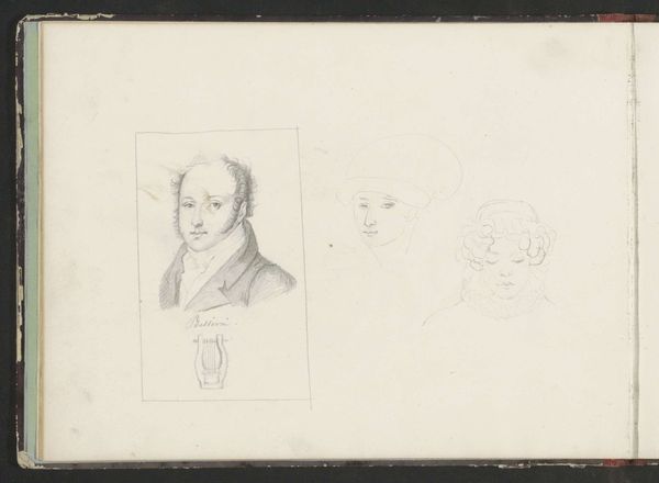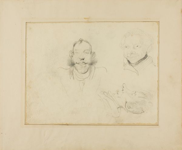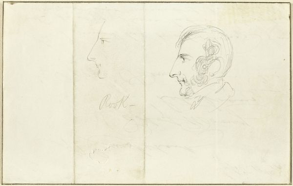 Here we see Marie Jeanne Clemens's "Dameportræt i medaljon. Profil t.v. Desuden to hoveder i profil," a drawing characterized by its delicate lines and subtle gradations of tone. The composition, with its central medallion portrait and flanking profiles, organizes the visual field through a formal structure reminiscent of classical portraiture. Consider how the artist uses line to define form, creating volume and depth with minimal shading. The profiles, set against the stark ground of the paper, operate as signifiers of identity and status within a semiotic framework. Yet, Clemens's engagement with classical forms seems also to subvert them; the drawing has a tentative, searching quality. It avoids any definitive statement, challenging fixed notions of representation. The unfinished quality, the sparse detail—these elements ask us to question the artwork’s relationship to broader artistic and philosophical concerns. It invites us to consider how the piece functions within a larger cultural discourse. Art is not fixed, but rather an evolving dialogue.