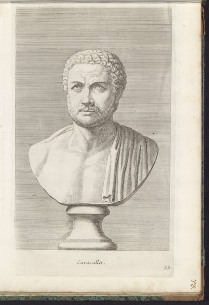 This engraving of Emperor Hadrian's bust was created by Hubert Quellinus. The composition is dominated by the structured bust and the grid-like hatching, which gives texture and form to the image, while also suggesting depth. Quellinus has rendered the bust with remarkable precision, yet the very act of engraving introduces a layer of interpretation. The use of line becomes critical: it defines the contours of Hadrian's face and the folds of his toga, transforming sculpture into image, a three-dimensional object into a two-dimensional representation. The cross-hatching not only models form but also invokes the intellectual debates of the time. It can be seen as an attempt to capture, through reproducible means, the essence of a classical ideal. The cool, intellectual approach invites us to consider how the very act of representation mediates our understanding of history and power. The image becomes a site where classical ideals are not merely reflected but actively reconstructed.