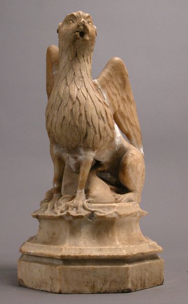 Curator: Here we have Jean-Léon Gérôme's bronze sculpture, "Dying Eagle of Waterloo," created in 1902. What strikes you immediately? Editor: The pathos, really. The sheer drama of the bird's posture, the way it claws at whatever that foliage is below. It looks utterly defeated, broken even. Curator: Absolutely. Gérôme was tapping into a powerful sentiment here. The eagle, of course, was a symbol of Napoleonic France. This work comes decades after Waterloo, but the memory, the *politics* of that defeat, still resonated deeply in French society. It's a representation of lost imperial glory. Editor: And consider the materiality of it. Bronze is a weighty, traditionally *heroic* material, but here it's used to depict something falling apart. The contrast is quite deliberate, and that spear-like fragment sticking out gives the idea of the process that generates the destruction. It shows what making war really does. Curator: Precisely. And think about the academic art world at the turn of the century. Sculptures like this, readily reproducible, could be disseminated widely, solidifying a particular historical narrative and appealing to patriotic sensibilities. Editor: The texture, too—look how the feathers are individually rendered, giving it a life-like quality despite the inherent stillness of the medium. It invites a tactile engagement, a desire to understand the skill and labor that went into its crafting. You wonder what kind of craftsman actually did this work. Curator: Gérôme, though celebrated in his time, fell somewhat out of favor with the rise of modernism, precisely because of his commitment to academic realism and historical subject matter. But it's precisely this dedication to representing and reflecting on specific historical moments that make his work, and "Dying Eagle of Waterloo" in particular, so compelling for us today. It asks how should war, which is clearly linked to suffering and degradation, be remembered? Editor: I agree. It is a complex interplay of defeat and artistic achievement, questioning how materials can betray inherent value if war gets involved, like metal here. Curator: So, let us move to our next masterpiece...
