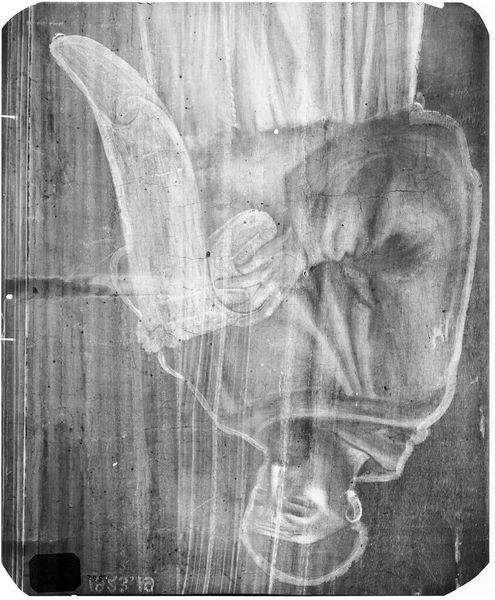 Curator: Here we see an X-radiograph of "Mrs. Thomas Cranston," originally by John Singleton Copley, held at the Harvard Art Museums. Editor: The starkness is incredible! It's like looking at a ghost, a shadow of the original. You can clearly see the underpainting and the materials Copley used. Curator: Absolutely. This image reveals so much about artistic process. The radiography illuminates how Copley constructed the portrait, the layering of paint, the density of the pigments. Editor: And it gives us access to something usually hidden. It's a form of material analysis, but also an institutional one. It makes you wonder about conservation efforts and our impulse to study these works scientifically. Curator: Indeed, it prompts us to consider the intersection of art, science, and history, and how our understanding of art is constantly being shaped by new technologies and approaches. Editor: Seeing it this way really challenges how we think about portraiture. It isn't just about representation, it's about the very act of making and preserving, isn't it?
