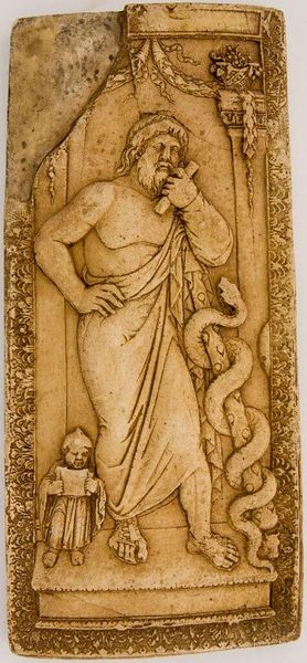 Editor: This is Andrea del Castagno’s *Eve*, a fresco created around 1450. I'm immediately struck by her ambiguous expression and almost masculine build. How do you interpret this work, particularly given its historical context? Curator: That ambiguous gaze and muscular form certainly challenge conventional depictions of Eve, don't they? It departs significantly from the submissive and overtly feminine portrayals common before the mid-15th century. Consider the torch she carries. It's not the apple, is it? The torch suggests not just knowledge, but perhaps illumination, and even agency. Doesn’t this alter her narrative trajectory in your mind? Editor: Yes, absolutely! Instead of passively accepting the apple, the torch implies Eve is actively seeking knowledge or bringing light to humanity, defying the traditional interpretation of the Fall. Does the torch have significance beyond just knowledge? Curator: Precisely! Light, fire, knowledge, defiance... It's a potent blend. Eve, in this context, isn't merely a sinner; she becomes a Prometheus-like figure, bringing enlightenment even at a great cost. The memory of classical learning intertwines with Christian teachings. What feelings does this fusion trigger? Editor: It reframes her story entirely. This *Eve* is far more compelling, almost heroic, which is unexpected and thought-provoking. I had always viewed *Eve* as a submissive woman. I wonder how many others missed such potent elements hidden in this Renaissance piece. Curator: It also makes one consider that symbols, through time, may not be what they once were. Now, is our journey to discover them not enlightening as well?