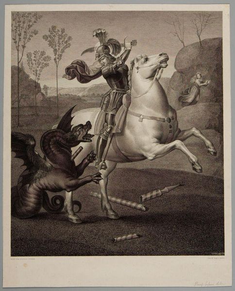 Curator: Böcklin’s 1896 oil on canvas, titled "War," seems almost to leap off the canvas. The Galerie Neue Meister in Dresden is fortunate to have it. Editor: It does evoke a chaotic, nightmarish vision. The sky is thick with ominous clouds, reflecting a blaze below that might signal annihilation. Curator: The artist’s command of composition is on full display here, wouldn’t you agree? Note the frenetic energy conveyed by the diagonal thrust of the four horsemen riding right to left, high above a city consumed by fire. Editor: Indeed. And let’s not overlook who those riders might represent. Surely, they allude to the Four Horsemen of the Apocalypse: Pestilence, War, Famine, and Death. The gaunt figures with their fixed stares, illuminated against the blaze, hold such terrifying symbolism. Curator: Symbolism thoroughly entwined with the structural elements. Böcklin balances the churning energy above with the architectural lines of the city below, all articulated with remarkable clarity of form despite the chaotic theme. Even in the flames, he maintains rigorous form. Editor: Right—and if we parse out these apocalyptic signifiers, there is much to unpack, particularly how collective memory is evoked here, isn't it? The burning city might recall imagery from the sacking of Rome, or, given the painting's time, evoke anxieties related to Europe’s tumultuous politics on the brink of a new century. Curator: Undoubtedly the visual elements coalesce to elicit those concerns. Observe the artist’s somber color palette: deep reds, browns, and blacks amplify the oppressive atmosphere, further heightened by impasto strokes that create palpable textures on the canvas, heightening the overall impact of the allegory. Editor: True, there is a timeless quality, as symbols, particularly those tied to collective fear and destruction, remain eternally resonant. The power of archetypes to ignite deep emotions, regardless of context, always proves remarkable. Curator: Indeed. This allegorical work truly serves as an instance of the enduring resonance between visual order and symbol in apprehending the anxieties that haunt our existence. Editor: Well articulated. I will undoubtedly contemplate the threads between symbol and psychological insight further.
