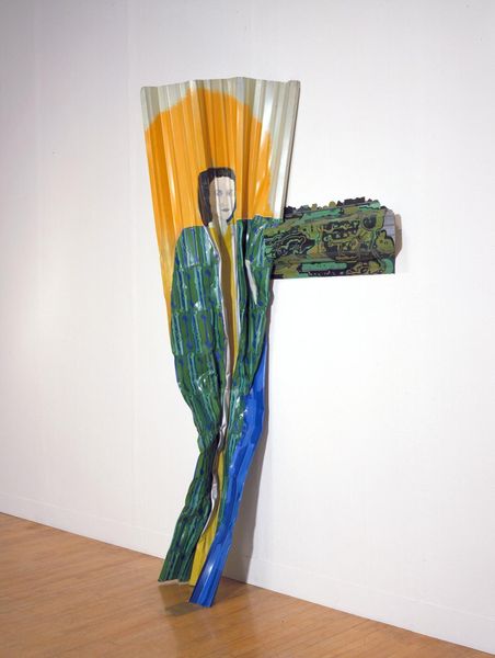 Curator: Lynda Benglis' "Odalisque: Hey Hey Frankenthaler," created in 1969. Acrylic paint directly on the floor, a real statement! What are your initial thoughts? Editor: Well, it certainly throws you for a loop! The colors are almost jarring, and the way it just sits there on the floor...it feels almost rebellious. Like paint escaped its canvas and decided to do its own thing. Curator: Benglis was playing with exactly that sense of challenging norms. Think about Abstract Expressionism at the time, so much heroic scale. Here, it is almost anti-heroic, right? Subverting traditional notions of sculpture and painting by bringing the process directly into the architectural space. Editor: I get that. The informality is striking. It's almost as if she’s saying, "Here's paint, here's the floor—deal with it." Was it trying to push back against the predominantly male art world? The “heroic” painting styles we often associate with, say, Pollock? Curator: Precisely! Benglis has often talked about challenging the male-dominated art world. She took inspiration, like in the work’s dedication to Frankenthaler, while establishing her voice. I also think about how the piece messes with gallery expectations –it's there, on the floor; you cannot avoid interacting with it. Editor: So, it's like a calculated mess? A way of taking the grand gestures of her male contemporaries and feminizing them, or rather, democratizing them by making the art literally accessible on the floor. Curator: Exactly! The form becomes secondary to the vibrant acrylic; the mess feels intentional and very engaging, it also suggests a performative and intuitive action. How space defines our encounter with art is being questioned right here. Editor: It makes me think about the temporary nature of some performances. You make me want to tread all over it to become one with the gesture. Curator: Benglis dares us to reimagine artistic hierarchies and how we engage physically and intellectually with artworks. The work becomes part of life; here you can see a critique against conventions while building and owning a completely individual visual language. Editor: This makes me appreciate Benglis' bravery. What an incredible work! Thanks for shedding light on this perspective.