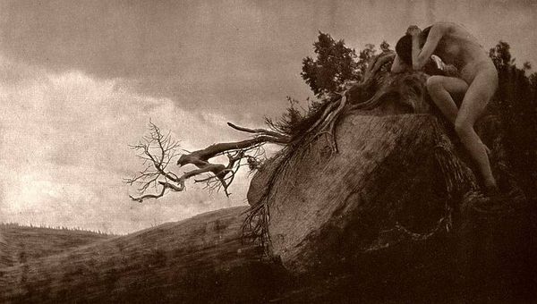 Anne Brigman, a key figure in the Pictorialist movement, made this image in the early 20th century using a technique that mimicked the aesthetics of painting. Brigman was part of a generation of women who sought to challenge conventional representations of femininity. Here, a nude figure reclines on a rocky precipice, her body blending with the landscape as if she were an extension of it. In a time when women’s bodies were often subjected to societal constraints, Brigman sought to portray a liberated female form, one that was in harmony with nature. Her artistic choices can be seen as a response to the limitations imposed on women, and she turned to nature as a space for freedom and self-expression. Brigman once said, "I want to express the mystical side of nature." She invites us to see the female body as an elemental force, connected to the natural world. This image challenges traditional narratives. It speaks to a longing for autonomy and connection to the earth.