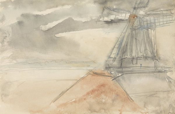 Editor: This is Salvador Dalí’s "La Tour de Babel" from his Biblia Sacra series, made in 1964 using mixed media like watercolor and colored pencil. It's dominated by a massive tower, almost fleshy in its color and texture. I’m struck by how the tower feels both ancient and like it’s in the process of becoming something else entirely. What stands out to you in this piece? Curator: I see a powerful commentary on human ambition and its potential for both creation and destruction, especially during the nuclear age. Dalí created this piece during the height of the Cold War. How do you think the fear of global annihilation impacted the construction, or perhaps deconstruction, of this iconic tower? Editor: That’s an interesting point! I hadn’t considered the Cold War context. The tower does seem almost precarious, as if it could crumble at any moment, and with those red washes below... what about its biblical roots? Curator: The Tower of Babel is inherently about fragmented communication, isn't it? The Old Testament story explores how a common language, intended for unification, was fractured, resulting in dispersion and misunderstanding. How do you interpret the use of broken architectural forms to communicate themes related to collective memory, cultural identity, and power? Do the deconstructed elements represent shattered social orders, the fading power structures in a post-colonial world, or perhaps an ode to lost cultures? Editor: Wow, that opens up so many layers! Maybe it’s not just about physical destruction, but also the collapse of shared understanding. Seeing it in that context really changes how I perceive the whole image. Curator: Absolutely. The enduring appeal of the Tower of Babel as a symbol lies in its potent combination of arrogance and hubris, the collapse of structures – whether cultural or ideological. What a compelling commentary Dalí offers about these cyclical struggles of humanity. Editor: I will definitely keep an eye out for symbols of deconstruction in art now! Curator: I will make a conscious effort to learn more about the sociopolitical period impacting the meaning behind a work of art.