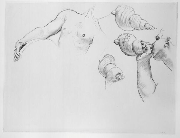 This stark image by Zdzislaw Beksinski presents a reclining figure, rendered with the artist’s signature macabre intensity. The body, contorted and seemingly decaying, evokes potent symbols of mortality and suffering. Consider how poses of reclining figures have been used across time, like the Etruscan sarcophagi, where figures are depicted in a state between life and death, inviting reflection. Beksinski's figure, however, lacks the serene composure of classical depictions. Instead, there is a raw exposure to the harsh realities of existence, a confrontation with our inevitable decay. The figure reminds us of the ever-present undercurrent of our deepest fears regarding our own mortality. It's a visceral depiction of the human condition that transcends specific historical moments, resonating with universal anxieties and primal fears. In this way, the image serves as a mirror, reflecting our collective subconscious.