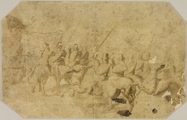"Martyrdom of the Ten Thousand (eighth part)" was created by Domenico Campagnola, sometime in the 16th century. In this scene Campagnola presents the viewer with a sea of soldiers and horses ready to follow orders. The landscape is filled with spears pointing upwards, reminiscent of pikes or bayonets. The subjects in the image are depicted with a striking lack of individuality or emotion, which might suggest an exploration of the dynamics of power, obedience, and the potential dehumanization inherent in the structures of authority. What are the consequences of blind faith? Campagnola invites us to reflect on the tension between individual agency and collective action, and the ways in which religious and political ideologies have been used to justify violence and oppression throughout history. The print encourages a deeper understanding of both the historical context in which the artwork was produced and the continuing relevance of its themes in contemporary society.
