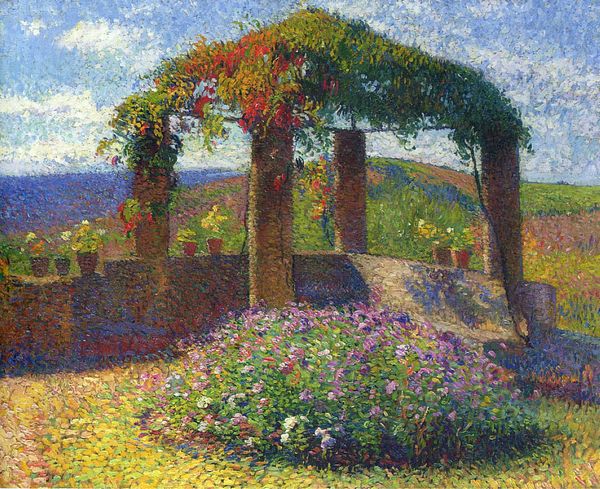 Henri Martin made this painting, The Pergola, with oil on canvas, but when? The date's a mystery! Look at how he builds the image from tiny dots of color. It's almost like he's not just painting what he sees, but how he sees. Artmaking, for me, is a process of discovery, a conversation between intention and accident, control and surrender. See the way the light flickers on the leaves above the pergola? Martin isn't trying to fool you into thinking it's real. Instead, he lays down these little marks, a mosaic of color. The paint isn't thick, but the surface is alive, each touch vibrating with light. It reminds me of Seurat, but with a warmer, more human touch. Ultimately, it's the artist's personal connection that elevates this work beyond a mere visual exercise.
