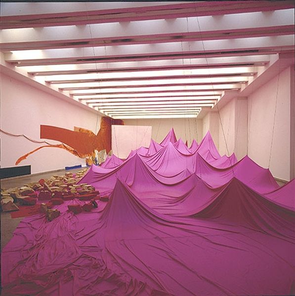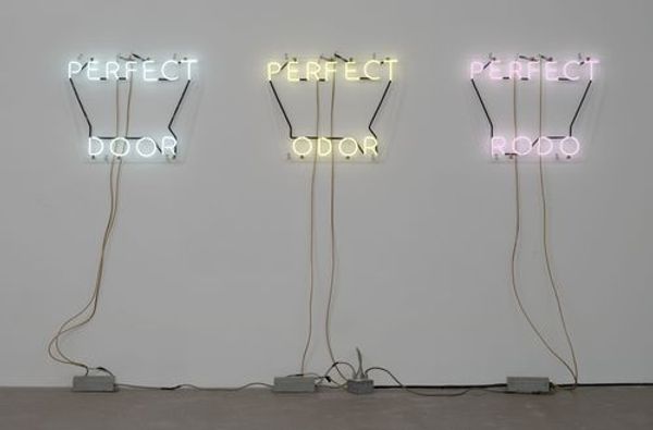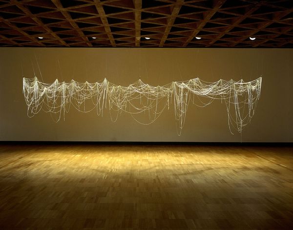 Jason Rhoades created "Twelve-Wheel Waggon Wheel Chandelier" to offer a spectacle of language and form that challenges conventional notions of beauty. At first glance, this piece might seem like a chaotic jumble of wagon wheels and neon signs, but Rhoades was deeply invested in exploring the American West. This was a landscape of both promise and exploitation. The wagon wheel, an iconic symbol of westward expansion, becomes entangled with the dazzling allure of neon lights, evoking the tensions between progress and the commodification of culture. Rhoades creates a space that is not just seen, but viscerally felt. The bright glow and the dangling wires can feel overwhelming. The chandelier becomes a symbol of how cultural symbols and meanings are constructed, deconstructed, and ultimately, become part of our shared, albeit complicated, identity.