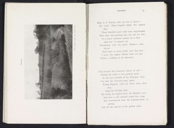 Curator: Immediately, I'm struck by the stark duality – a sense of journey on the left, and a shadowed presence on the right. Editor: Indeed. This diptych by Ian McKeever invites contemplation. It’s an untitled piece, part of the Tate collection, combining text and image. Curator: The text becomes an image, doesn't it? A receptacle. Consider the phrases: light altering in intensity... who no longer waits... These words resonate with longing and a search for illumination within the darker aspects of existence. Editor: I read it as a subtle critique of romanticised notions of nature. The "pool beneath an oak" seems almost cliché, yet the fragmented phrases alongside introduce uncertainty, destabilising any singular interpretation. It's about the lived experience, not the ideal. Curator: Absolutely. The hanging lichen, the moss, the shadow play – these are all symbols steeped in history. They remind us of the cyclical nature of time, the fragility of memory, and the persistent presence of the past in the present. McKeever creates a liminal space where these themes converge. Editor: And perhaps, that's the point. The work serves as a reminder to question what we think we know and to appreciate the beauty found in the overlooked corners of our world.
