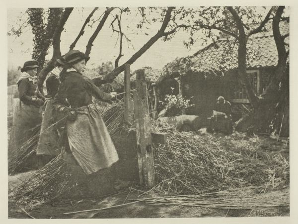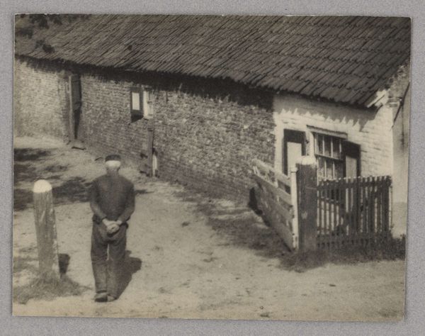 Curator: Oh, there's a palpable quietude about this photograph, isn’t there? A gentle rhythm of life. Editor: Yes, and a certain timelessness, too. This is Alfred Stieglitz’s “At the Pump, Black Forest,” a gelatin-silver print made sometime between 1894 and 1934. Curator: Black and white softens it somehow, elevating the everyday to something… poignant. Look at the way the light catches on the woman’s kerchief, it is simply marvelous! You feel this scene isn't just captured, it's almost remembered, if that makes sense. Editor: It does. Stieglitz was deeply invested in Pictorialism, the idea of imbuing photography with an artistic sensibility, making it more than just a record. He fought to have photography seen as an art equal to painting and sculpture, believing the photographer had a right, an obligation even, to manipulate the image, to impress their vision upon it. Curator: You see that manipulation in the dreamlike blur of the distant landscape. It isolates the woman, almost staging her act of gathering water. But it's not isolating in a sad way. She’s contained, centered. Safe, perhaps. Editor: Right, the Black Forest as a setting held particular resonance. It represented an ideal, an escape from the rapidly industrializing world. A return to simpler values. And Stieglitz, along with many artists of the time, felt a strong pull towards documenting and perhaps preserving this quickly disappearing way of life. Curator: She feels connected to her environment. Look how the pump almost blends into the architecture of the house! You're right; this piece speaks about yearning. Not just for simpler things, but for connection. To the land, to heritage, to oneself, you know? Editor: Precisely. He presents an idyllic vision steeped in the realities of rural labor, suggesting it could offer genuine solace amidst broader societal shifts. He suggests an enduring image. Curator: Yes, it's beautiful because it’s still. Stillness captured perfectly, suspended in time. A pause. Editor: So, as viewers, maybe we should just breathe deeply and appreciate what this stolen moment has to offer, from a distant time and place.