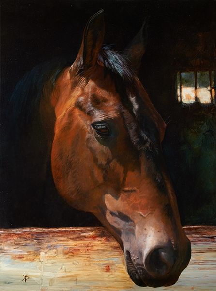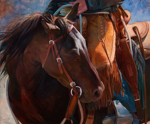 Rose Freymuth-Frazier made this painting of a horse with oil paint, it feels like a romantic echo of something old. I can feel the artist searching through layers of dark colors to arrive at the final image. The texture is smooth, almost creamy, and the color palette is rich, full of deep browns and reds against a dark background. The rosebush growing from its mane, and even around its hooves, is so striking. It makes me think of Renaissance portraits, but with a twist, like if you’re suddenly seeing something wild and untamed. Take a look at the way Freymuth-Frazier handles the light on the horse's flank. The light isn't just painted on, it's coaxed out of the darkness, and it makes the horse almost glow from within. It reminds me of the way Jenny Saville works, with this incredible sensitivity to the body. Ultimately, it's about a feeling, right? And Freymuth-Frazier really delivers that sense of mystery.