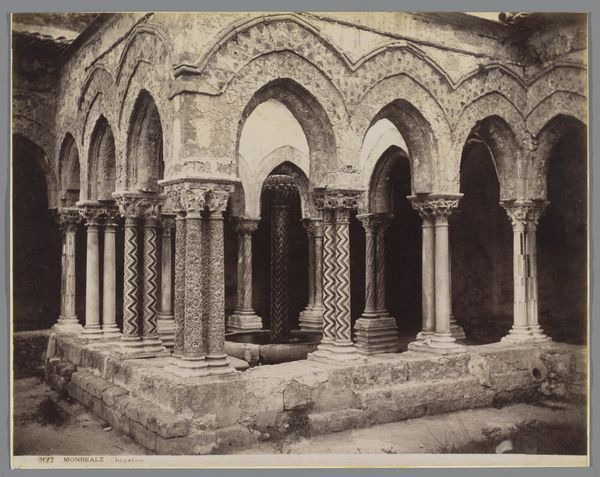 Curator: Looking at Edouard Baldus's photograph, taken in 1853, we see the facade of the abbey church of Saint-Gilles in France. Editor: My first impression is one of incredible age and solidity. The stone seems almost softened by time, a silent monumentality that speaks to centuries of history. Curator: Indeed. Baldus was commissioned by the French government to document significant architectural landmarks, often focusing on those impacted by modernization and urbanization. Photography at the time allowed the State to protect and revive the architectural treasures. This particular image is striking because it captures a medieval structure transitioning into the modern era, through a relatively new artistic medium. Editor: The way Baldus frames the Saint-Gilles's facade emphasizes its role as a public, almost civic, monument, one with complex social significance. Look at the positioning: it’s straight on, without romantic embellishment, offering what feels like an objective rendering. But who was that public and what was that significance? Curator: This Romanesque facade presents a fascinating visual vocabulary steeped in religious and social narratives. The carved tympana, the sculpted figures flanking the doorways—these aren't just decorations. They communicated stories, beliefs, and hierarchies within the medieval world. Furthermore, what message were the French authorities and Baldus were trying to convey through capturing it in the nineteenth-century context? Editor: Precisely! Considering the medium—photography—and the context in which the photo was captured allows one to ponder on ideas surrounding preservation and historical narratives. And the composition itself – a straight shot – reinforces this aura of a neutral historical record. Was it really objective, though, or just aspiring to be? Was the building’s role the same during the mid-19th century and today? Curator: Exactly. As viewers today, we are drawn to interpret this scene through our own lenses, shaped by current understandings of history, power, and representation. How does viewing it affect people's views on nationalism and class differences? Editor: I’d say that examining this image allows us to explore how the cultural significance of spaces, in this case photographed in the mid-19th century, are in dialogue with current-day intersectional understandings of race, identity, or socio-economic backgrounds. Curator: And this opens a broader conversation, about who has the power to document and to shape those historical narratives we all interact with today.