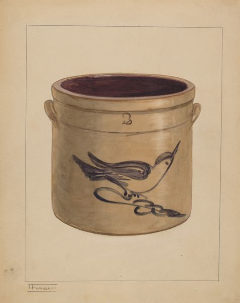 Hedwig Emanuel made this watercolor of a crock, but when exactly, we can't be sure. What grabs me is the way the artist sees the object, translating its heft and history onto paper with a careful, almost reverent hand. There's a beautiful transparency to the paint, letting the light of the paper shine through, especially in the soft, earthy tones of the crock itself. Notice how the blue floral design pops, each stroke deliberate, each dot a tiny universe of its own. The way the blue bleeds slightly into the beige background gives it a dreamlike quality, like a memory fading at the edges. Look closely, and you’ll see another version of the lid rendered at the top, as if the artist is showing you different options, different perspectives. This piece reminds me of other artists, like the early American folk artists, who found beauty in the everyday. It’s a testament to how art can elevate the ordinary, inviting us to pause and appreciate the simple elegance of a humble crock. It's a reminder that art isn't about answers, it's about the ongoing conversation, the endless possibilities of seeing and feeling.