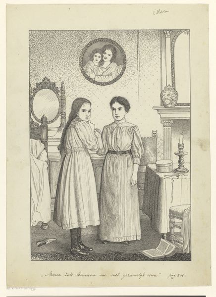 Editor: Here we have Frederik Hendrik Weissenbruch's "Drie jonge vrouwen," made with pencil around 1855 to 1865. It's currently housed at the Rijksmuseum. I'm immediately struck by the softness of the pencil and the incredible detail in their clothing. What do you see in this piece? Curator: Well, looking at this drawing, I’m immediately drawn to the materials and process. Pencil wasn’t just a readily available medium; its use speaks to accessibility and the potential for mass production of images through reproduction techniques that were developing at the time. Notice the different densities of shading - this indicates layers of graphite, which highlights a specific set of labor, that the artist goes over to reinforce the contrast in what areas, if it where just one time pencil is ran through a paper that would have not worked. Editor: So you're saying the choice of pencil and the artist's technique reveal more about its historical context than, say, just personal expression? Curator: Precisely. Consider how portraits were traditionally rendered. This choice of a “humble” material makes us rethink about who had acess, about how it circulated...The artist may have actively questioned established traditions. Moreover, notice the hands of the figures—what does their depiction suggest about the role and status of women during the mid-19th century? Are they at leisure, occupied by “appropriate” pursuits? Editor: It is a really captivating thing when it comes to status… It’s fascinating how analyzing material choices opens up a whole new avenue of interpretation. Curator: It indeed does. Paying attention to material choices invites us to investigate the broader historical, social and cultural conditions surrounding the artwork’s production and reception. Editor: This has really changed the way I see the artwork. It makes it all the more relatable when it seems like materials speak on their own.