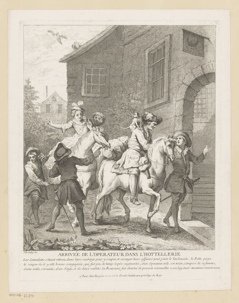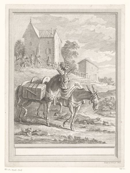 Alexia von Lode created this etching, titled "Det unge Føl og Bonden", depicting a young foal and a farmer. The horse is a symbol deeply rooted in human history, representing strength, freedom, and the pastoral life. Consider the farmer's pose. His outstretched hand might remind us of depictions of guidance. It echoes gestures found in classical art, where figures lead others toward enlightenment or a new path. This motif is not static; it evolves, reflecting changing societal values. Think of the horse, too, not just as an animal but as a carrier of cultural memory. Its image appears in cave paintings, ancient friezes, and modern advertisements, each time imbued with new meanings. There's an emotional resonance in the bond between humans and animals that reaches into our subconscious, a reminder of our ancient connections to the natural world. This relationship is conveyed through the composition and gaze of the characters, evoking a deep, subconscious state.