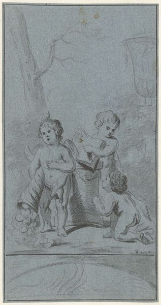 Editor: This drawing, "Woman and Boy" by François Boucher, from sometime between 1700 and 1770, is done in pencil on paper. There's a sweet intimacy to it, a casual moment captured. How do you interpret this work? Curator: It’s a window into the evolving public image of motherhood during the Rococo period. Consider how Boucher, favored by the French court, helped to popularize these sentimental genre scenes. Does this image feel authentic to you, or constructed? Editor: Constructed, definitely. There's something very idealized about their clothing and demeanor. But, does that suggest something about its political role? Curator: Precisely. Think about the rising merchant class. Images like this, circulating in prints, might have served to ennoble their aspirations, offering a sanitized view of "country life." It definitely wasn't aimed at representing true peasantry. Look at the almost theatrical quality of the composition. What message might the artist be conveying about class and gender in 18th-century France? Editor: So, it's not just a simple depiction, but a performance of an idea, contributing to social ideals about motherhood and a nostalgic longing for a simple life. It makes me wonder who consumed these images. Curator: A keen insight. The rising middle class in urban settings. Editor: Wow, that really changes how I see it. Thanks. I didn't initially consider its political implications, focusing more on its sentimentality. Curator: Exactly! It’s about understanding art’s complex relationship with power. Always question whose stories are being told, and for whom.