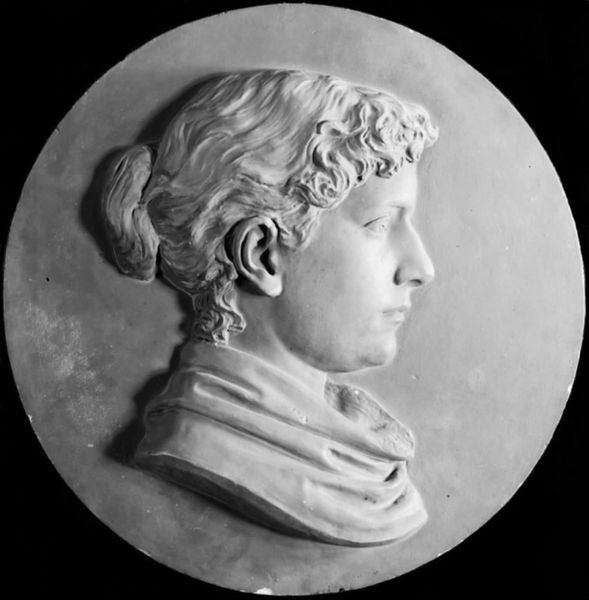 Curator: Here we have Johannes Wiedewelt's marble relief from 1801, titled "Nicolai Abraham Kall, Merchant." Its scale is intimate, almost like a coin. My first impression is one of formality and almost unsettling restraint. Editor: The restrained aesthetic is entirely in keeping with Neoclassical conventions, echoing the ideals of reason and order so prized during that period. What’s particularly striking is how Wiedewelt employs line and volume to convey both Kall’s individual features and his social standing. Curator: Indeed, the clean, precise lines serve to elevate the subject, presenting him as an archetype more than an individual. The meticulous detailing in the hair and the sober expression further reinforce the air of authority. But is this simply a neutral representation, or does it communicate something more about Kall’s role in society? Editor: This work speaks volumes about the burgeoning merchant class and their increasing power. Kall’s representation in marble, typically reserved for nobility or mythological figures, signifies his ascent in society. This is about more than just portraiture; it’s about power, status, and the shifting social landscape of the era. The choice of medium itself, marble, a material synonymous with permanence, attempts to fix Kall’s legacy within a classical framework. Curator: From a purely formal perspective, consider the contrast between the smooth, polished surface of the face and the more textured treatment of the hair. The differing textures animate the piece and introduce a dynamism that subtly mitigates the stoicism you mention. What I also find fascinating is how little the artist relied on color. Editor: While a focus on form is key, we can't divorce it from the societal narrative it reinforces. A man of commerce being immortalized in this classical, seemingly 'neutral' style reflects and solidifies his position, and the values of that rising class, within the broader historical and political context. Curator: It is definitely interesting to view Kall’s portrait as a commentary on social mobility during the early 19th century. Editor: Precisely. And it also reminds us that even the most ostensibly neutral aesthetic choices are always imbued with political meaning.