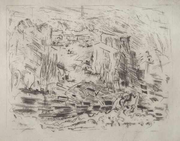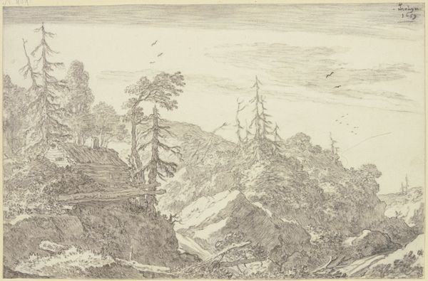 Editor: So, this is "Landscape with Salmon Traps" by David Cox. The pencil drawing feels so immediate. What do you see in this piece? Curator: I see a study in labor and resource extraction. The salmon traps – consider their construction, the labor involved, and the impact on the salmon population. Cox isn't just showing us a pretty landscape; he's hinting at a system of production and consumption. How does the materiality of pencil contribute to this reading? Editor: It feels very raw, immediate. Like a quick sketch capturing a real-world moment. Curator: Precisely. Cox's choice of a readily available, inexpensive material connects to the everyday labor depicted, democratizing the artistic process and challenging notions of high art. Editor: I never thought about the pencil itself adding to the meaning that way! Curator: Thinking about the means of production can change our understanding of art.