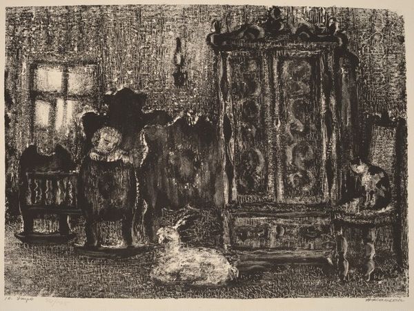 Anatoli Lvovich Kaplan made this lithograph, On the Eve of the Sabbath, with ink on paper - a real commitment! Look at the way the image shimmers into being through hundreds of tiny marks. Kaplan reminds us that making art is a process, a journey taken one step at a time. It's like he's not just depicting a scene but letting us feel the quiet activity, the gradual way a space fills with meaning. The texture here is everything. It’s almost as if you could reach out and touch the grainy surface of the walls or feel the soft glow emanating from the candlesticks. I’m drawn to the way the light flickers across the tablecloth, each little speck a testament to the artist's touch, each dot part of a bigger conversation. This piece, with its intimate domestic scene, feels like peering into a memory, not unlike Vuillard's interiors. Both artists transform the mundane into something meaningful, finding the extraordinary in the ordinary. Kaplan shows us that art is less about answers and more about embracing the questions.