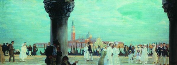 Clarence Gagnon created this painting of Venice using oil on canvas. The brushstrokes are loose and visible, giving a sense of spontaneity and immediacy to the work. He captures the atmospheric effects of light and water using a technique that was rooted in impressionism. The figures are rendered with simple forms, suggesting that Gagnon was more interested in capturing the scene’s overall impression, rather than the detailed rendering of its components. Oil painting itself has a complex history, tied to the development of global trade networks, and the sourcing of raw materials like pigments and linseed oil. Artists were dependent on a network of suppliers, which in turn was tied to colonial exploitation and resource extraction. Considering these aspects broadens our perspective, reminding us that the making of art is always embedded in social, economic, and political realities.