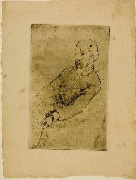 Editor: Here we have William Rothenstein's drawing of Charles Conder, created sometime in the late 19th or early 20th century. I'm immediately struck by the figure's contemplative pose. How do you read this portrait through a contemporary lens? Curator: I see a young man positioned at the intersection of artistic movements, grappling with his identity within a rapidly changing social landscape. Rothenstein, though male, captured a vulnerability in Conder that speaks to the performance of masculinity itself. Does his pose represent genuine introspection or a carefully constructed image for the male gaze? Editor: That's a great point. The ambiguity is what makes it so compelling. Curator: Exactly. And that ambiguity allows us to consider how societal expectations and artistic expression intertwined for men of this era. It's a powerful reminder that even within seemingly straightforward portraits, complex narratives of gender and identity can be found. Editor: This makes me appreciate the drawing even more. Thanks for your perspective!