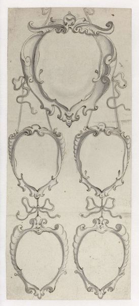 Pierre Gabriel Berthault created this print of medallions with fishing attributes sometime in the late 18th century. The Rococo style frames are decorated with fishing nets, harpoons, and swags of flowers. Created in France, a major European centre of artistic production, this print reflects the period's fascination with ornamentation and the decorative arts. The Rijksmuseum, where it is now housed, has a vast collection of such prints. These prints were not simply artworks in themselves, but served as templates for artisans, demonstrating popular design elements, and influencing the look of furniture, ceramics, and interior decoration. The motifs of fishing tools integrated with elegant floral arrangements point to a society that valued both the bounty of nature and refined aesthetics. The elaborate designs also suggest a sophisticated consumer culture where even the tools of labour can be represented as decorative motifs. Through such prints we can trace the evolution of design and the social values embedded in the aesthetic choices of the time. Researching the history of decorative arts and printmaking can tell us more about the exchange of ideas and the institutions that supported artistic production in 18th-century France.