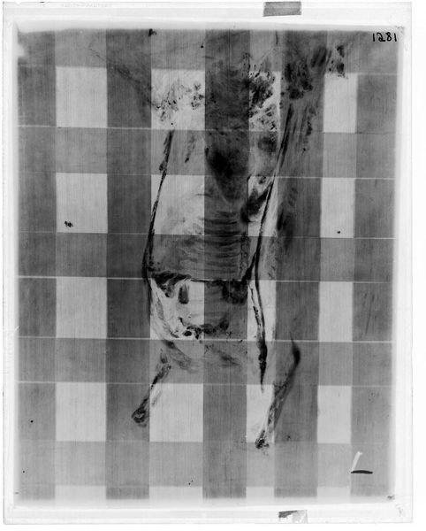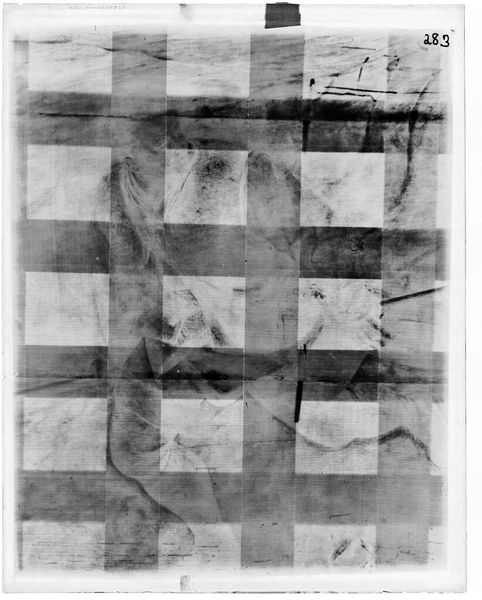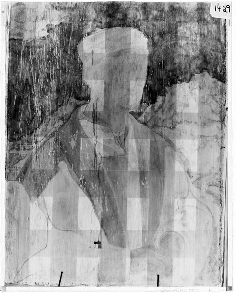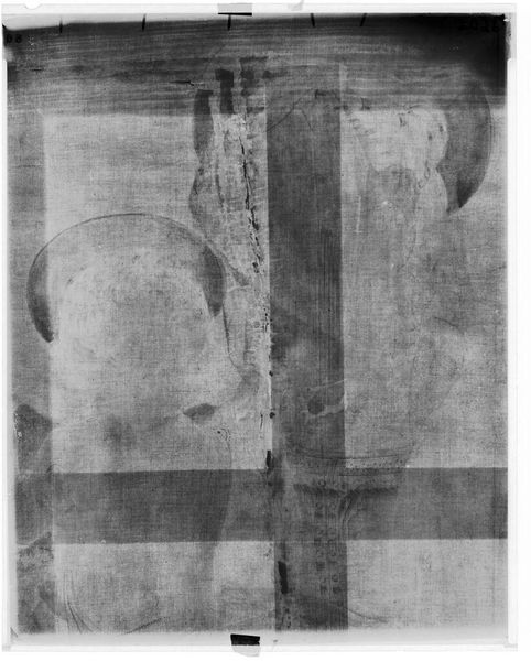 Editor: This is an X-radiograph of "Jean de Dintville," after Hans Holbein. Seeing art through this lens, revealing its hidden layers and material composition, is really interesting. What can we learn about artistic labor and the creation process by looking at an X-ray of the piece? Curator: This image foregrounds the materiality of painting. It invites us to consider Holbein's process, the buildup of pigment layers, and the support structure beneath. How does revealing this hidden infrastructure change our understanding of the artwork as a commodity, or the artist's labor? Editor: It certainly makes you think about the unseen work that goes into creating what we see as this perfect image. Thanks! Curator: Exactly! It highlights the tangible, constructed nature of art, moving beyond just aesthetics.