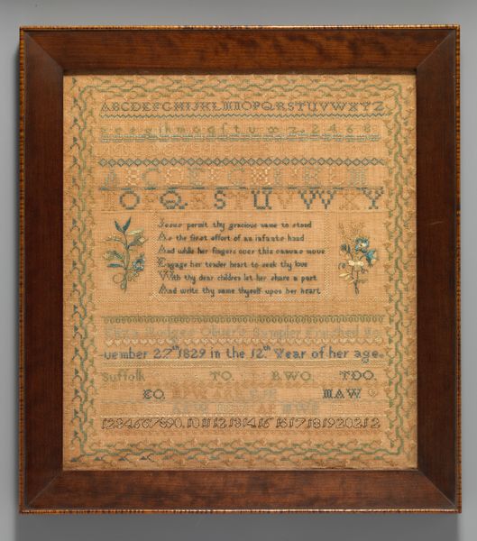 This sampler was made by Mary Elizabeth Morse in 1840, using linen and cotton thread. What we see here is more than just needlework; it's a window into the world of a young woman in 19th-century America. The alphabet and numerals, carefully stitched in neat rows, tell a story of education and skill-building. But look closer, and you'll see a passage describing New York. This demonstrates her knowledge of geography and history. The process of creating a sampler like this was time-consuming, requiring patience and precision. It reflects the values of hard work and discipline, virtues that were highly prized in that era. In a time before mass production, such hand-made items carried a special significance. They represented not just utility or decoration, but also the personal investment of the maker. By appreciating the material and the making, we recognize the depth of cultural meaning embedded within the artwork, elevating it beyond a mere craft object.