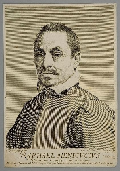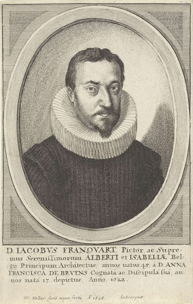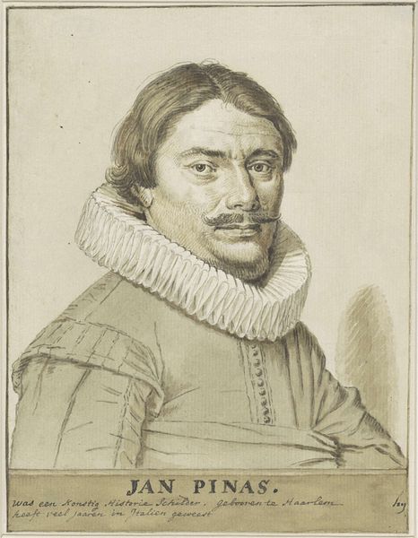 Curator: Up next we have Diego Velázquez's oil on canvas "Portrait of a Man," dating back to 1628. What strikes you initially? Editor: Darkness, I think. The way he's emerging from a sort of void. He looks almost reluctant to be seen, like a phantom in a dream, but not spooky, somehow dignified. Curator: The piece definitely resonates with the tenebrism characteristic of the Baroque movement. Consider how Velázquez situates the male subject in relation to structures of power and privilege in 17th-century Spanish society, even within such minimal visual language. Editor: Totally. He's buttoned up, literally, in that crisp, enormous collar. It’s like a fortress protecting him. But look at his eyes, there’s a quiet intelligence there, a challenge. Is this about conforming, or a subtle act of defiance within the confines of his social role? Curator: Absolutely, it's this tension, the negotiation between interiority and public performance, that makes the painting so compelling. The subdued palette directs our focus, and allows a critical reading of Baroque conventions related to masculinity. Editor: I’m loving his hand. It's so delicately rendered, almost vulnerable peeking out from that sleeve. It provides a counterbalance. It adds humanity, despite the somber, formal trappings of the portrait. Curator: Velázquez has given us an intimate glimpse, navigating a line between formality and what feels undeniably personal, which continues to prompt diverse analyses across sociological and art historical studies today. Editor: It’s interesting how much meaning radiates from this one face. Makes you think about the silent battles everyone’s fighting, under those pristine white collars, through history! Curator: A potent reminder that portraiture does more than just represent, it interrogates and complicates. Editor: Right, Velazquez gets the audience thinking about the nuances of identity throughout history, no matter how simple the image may appear.